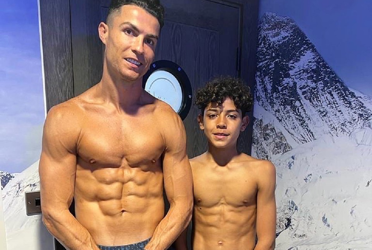 Cristiano Ronaldo mostrou-se ao lado do seu filho mais velho, Cristianinho. Os dois surgem apenas em roupa interior a mostrar os abdominais.
