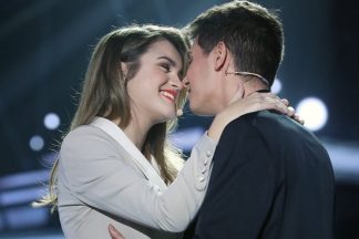Vencedora da Eurovisão em sobressalto. Cantora surpreendida com cobra gigante ao seu colo