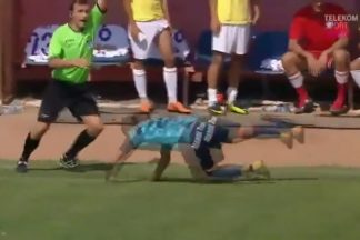 Insólito. Treinador rasteira jogador adversário que seguia no contra-ataque
