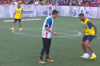 Defesa rouba bola a Neymar e avançado brasileiro vinga-se. A plateia assobiou a atitude do futebolista