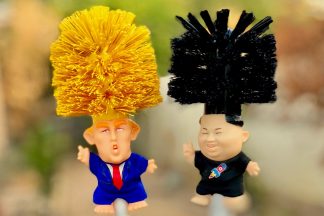 Donald Trump e Kim Jong-un à venda em formato piaçaba. Há desconto pelo par…