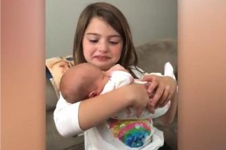 Enternecedor. Veja a reacção desta menina ao ver a irmã recém-nascida pela primeira vez