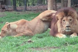 “Gosto tanto de você leãozinho”. Ela bem tenta seduzi-lo, mas ele não está nem aí…