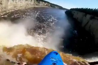 De ficar sem respiração. Homem desce de caiaque por uma cascata com 33 metros de altura