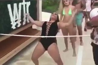 Decidiu dançar o limbo em fato de banho e acabou por revelar mais do que devia