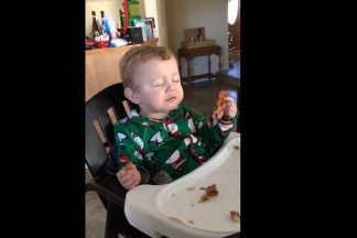 Bebé prova bacon frito pela primeira vez e reação é hilariante. Ora veja