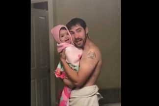 Pai e filha em frente ao espelho. Assista a este “playback” genial