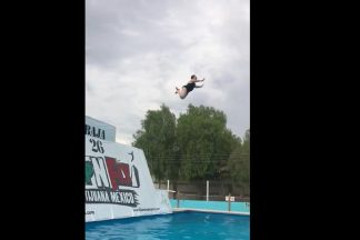 Mergulho em escorrega para dentro da piscina acaba em voo picado