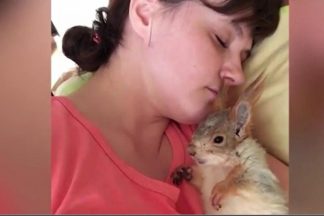 Esquilo sofre pesadelos. Mas nada como o aconchego da dona para voltar a adormecer…