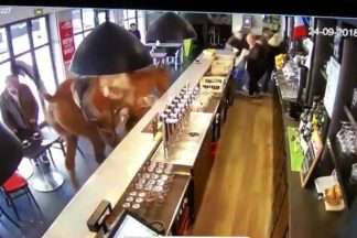 Cavalo foge de estábulo e invade restaurante. Caos instalou-se rapidamente