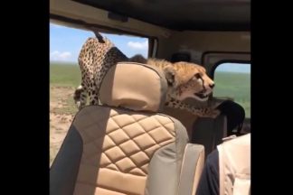 Safari na Tanzânia quase acabava mal. O que faria se fosse obrigado a dividir um jipe com duas chitas?