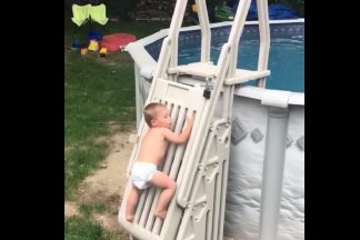 Brincadeiras sem fronteiras. Veja o que fez este bebé atrevido para entrar na piscina