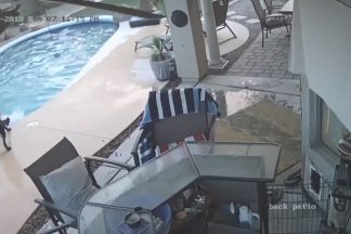 Cão salta para dentro da piscina e salva o melhor amigo de quatro patas. Eis o momento de bravura