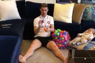 CR7 descobre o seu novo “jogo favorito” enquanto faz de “babysitter”. Mas a pontaria não é a melhor