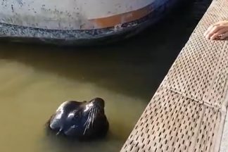 Leão marinho apaixona-se… e puxa rapariga para dentro de água!