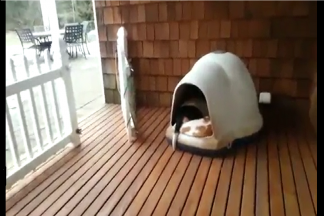 O fator multiplicação parece estar presente neste vídeo. Quantos cães vê nesta pequena casota?