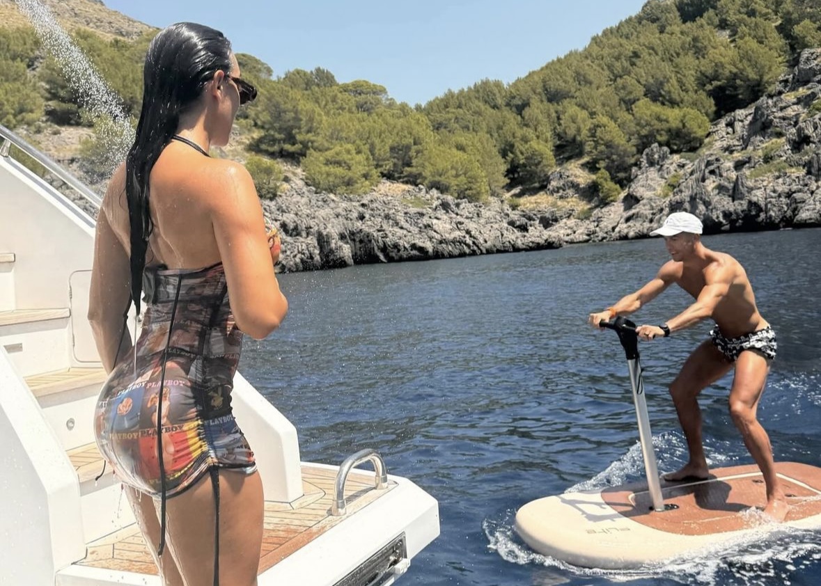 Em Palma de Maiorca, a bordo do iate de CR7, o casal tem aproveitado para relaxar, com brincadeiras na água, em cima de uma prancha ou a nadar com um propulsor.