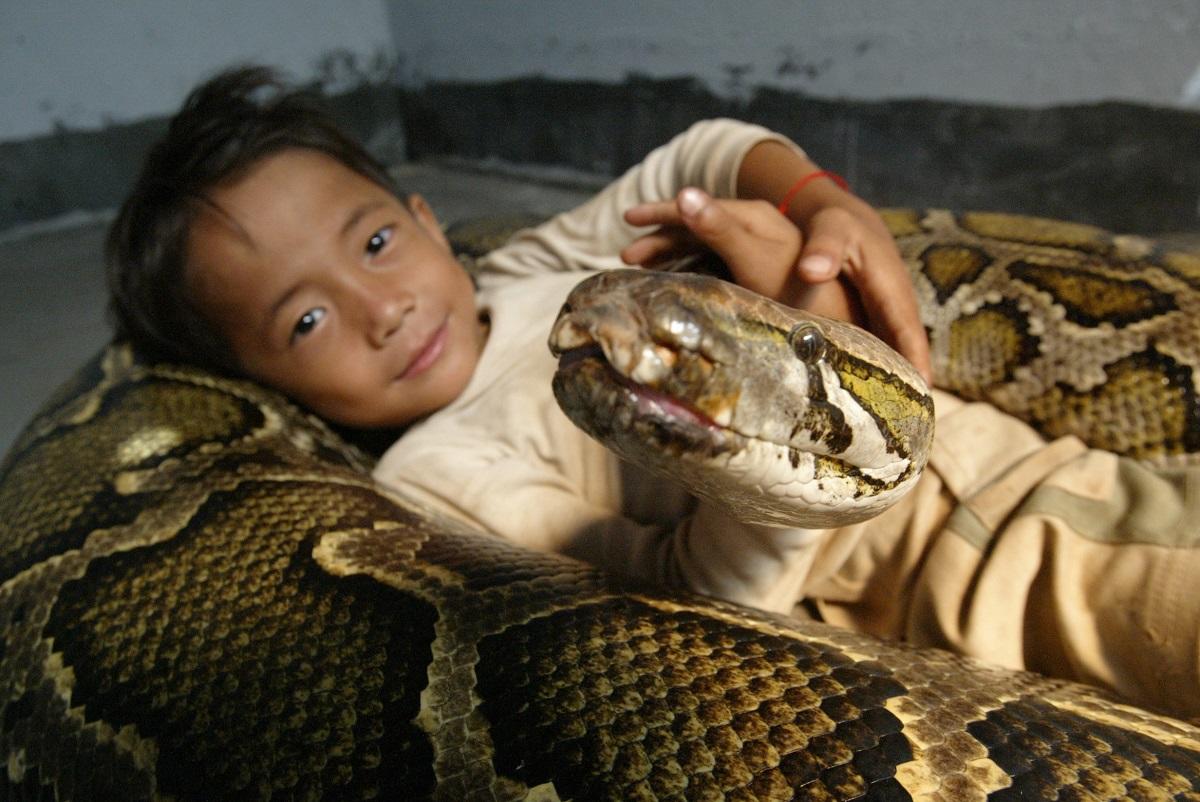 Uma criança na Indonésia tem um animal de estimação pouco comum: uma pitão gigante. Em fotografias divulgadas online, podemos ver o menino de cerca de dois anos deitado em cima da cobra. O rapaz, como qualquer outra criança, puxa a cabeça da cobra e brinca com ela.