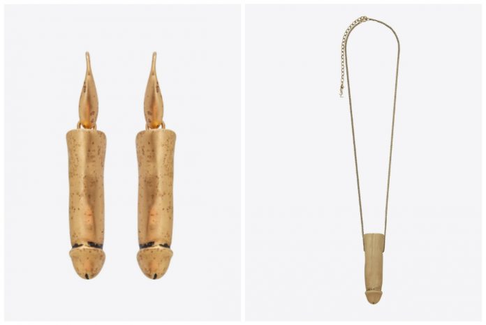 Pode parecer uma brincadeira, mas é mesmo verdade. A marca francesa Yves Saint Laurent tem à venda um par de brincos e um pendente em forma de pénis.